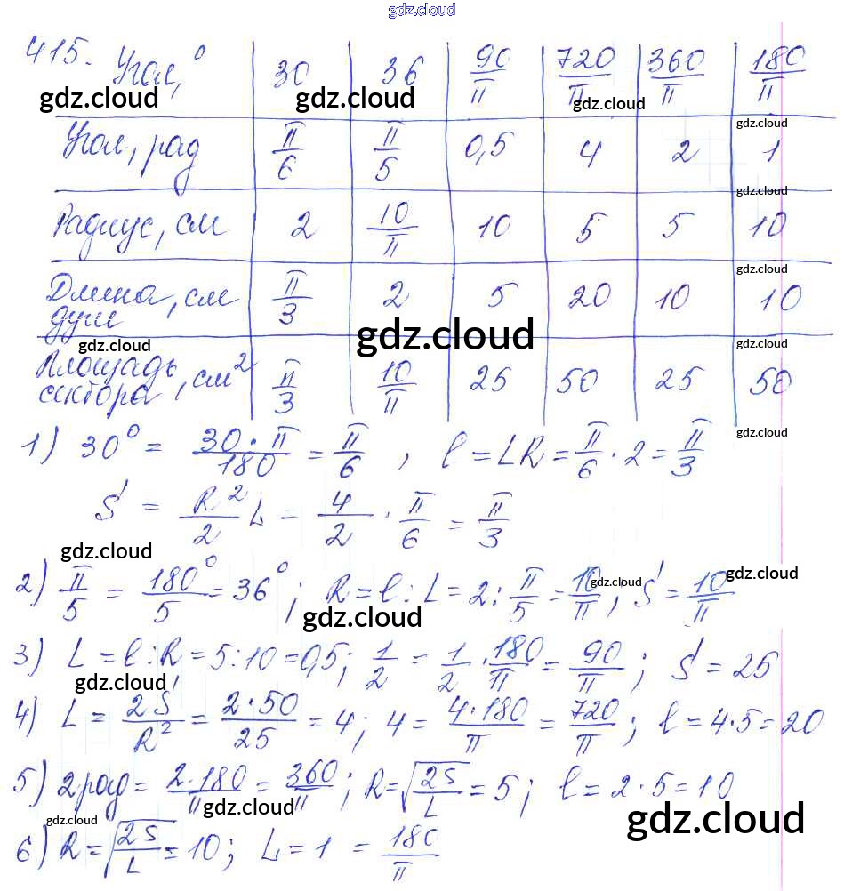 Ответ на задание 415 Учебник Алгебра за 10, 11 (десятый, одиннадцатый) класс Алимов, Ткачева, Колягин, Федорова, Шабунин Базовый и углубленный уровень 2015