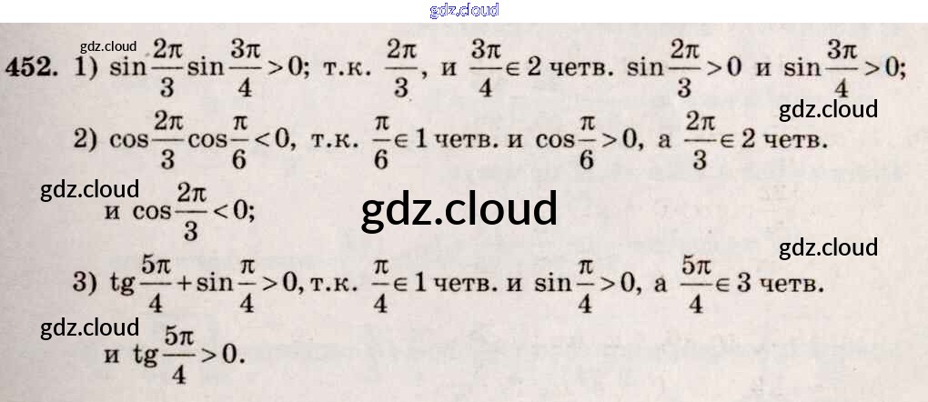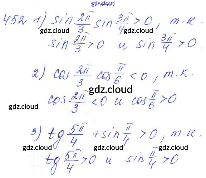Ответ на задание 452 Учебник Алгебра за 10, 11 (десятый, одиннадцатый) класс Алимов, Ткачева, Колягин, Федорова, Шабунин Базовый и углубленный уровень 2015