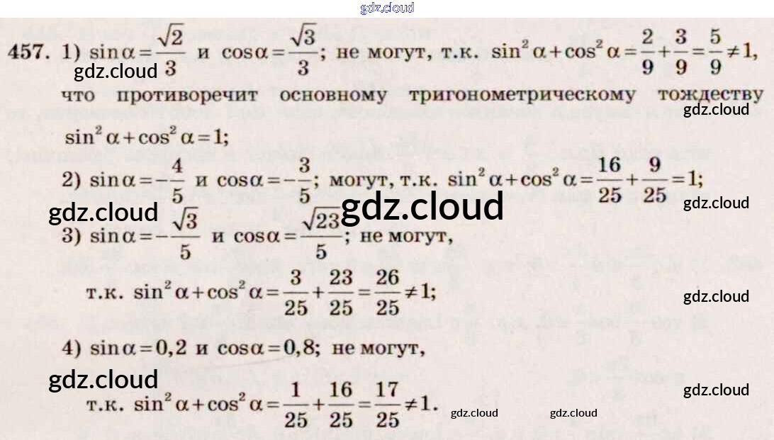 Ответ на задание 457 Учебник Алгебра за 10, 11 (десятый, одиннадцатый) класс Алимов, Ткачева, Колягин, Федорова, Шабунин Базовый и углубленный уровень 2015