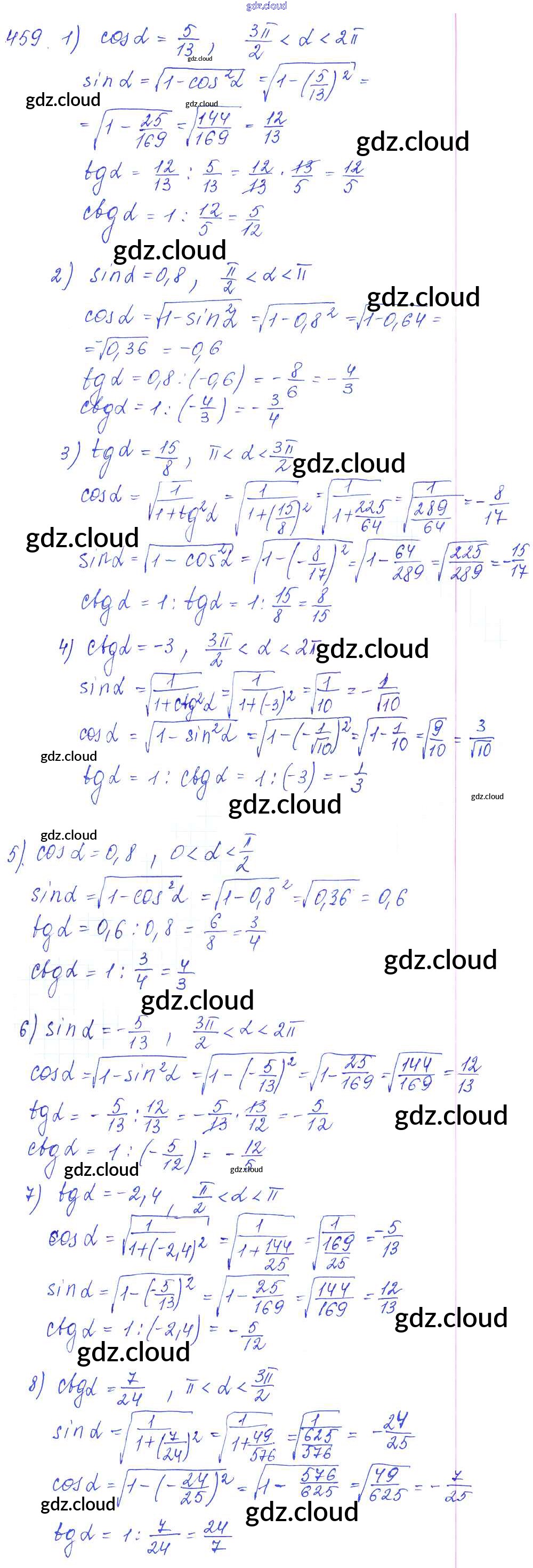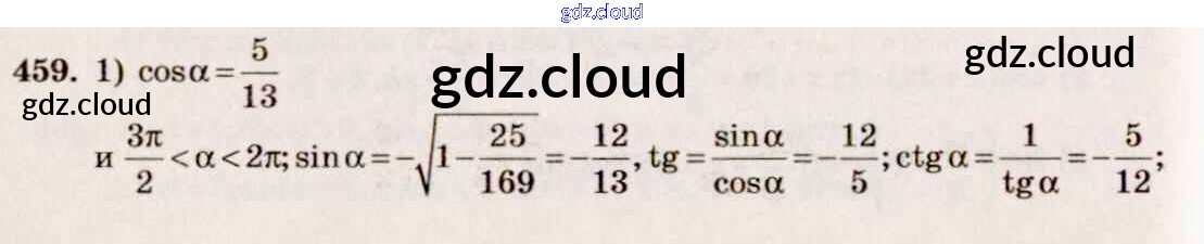 Ответ на задание 459 Учебник Алгебра за 10, 11 (десятый, одиннадцатый) класс Алимов, Ткачева, Колягин, Федорова, Шабунин Базовый и углубленный уровень 2015