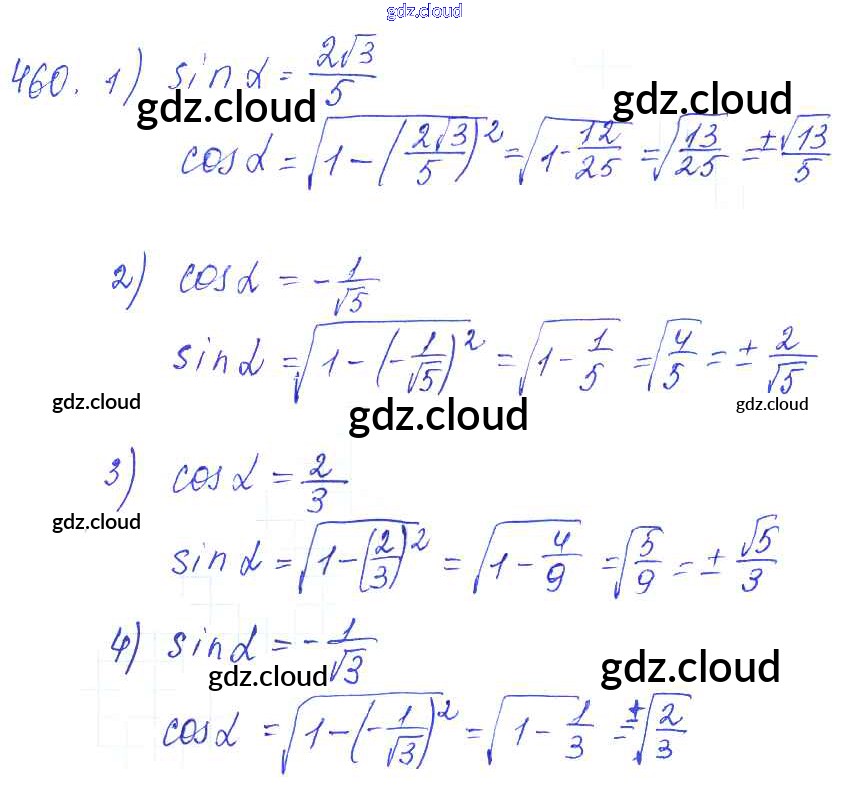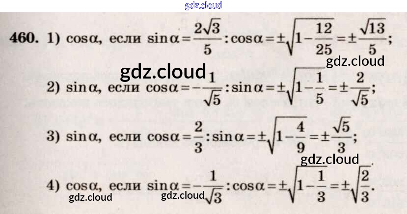 Ответ на задание 460 Учебник Алгебра за 10, 11 (десятый, одиннадцатый) класс Алимов, Ткачева, Колягин, Федорова, Шабунин Базовый и углубленный уровень 2015