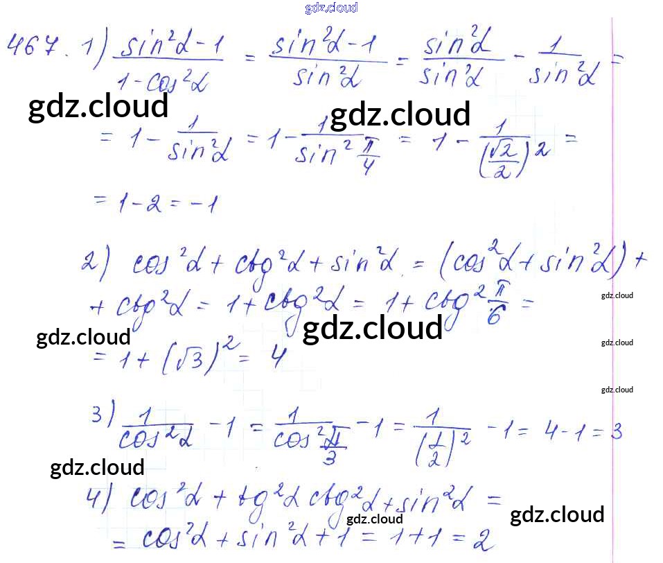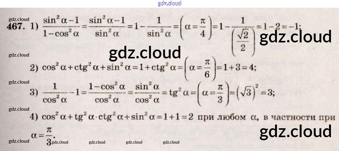 Ответ на задание 467 Учебник Алгебра за 10, 11 (десятый, одиннадцатый) класс Алимов, Ткачева, Колягин, Федорова, Шабунин Базовый и углубленный уровень 2015