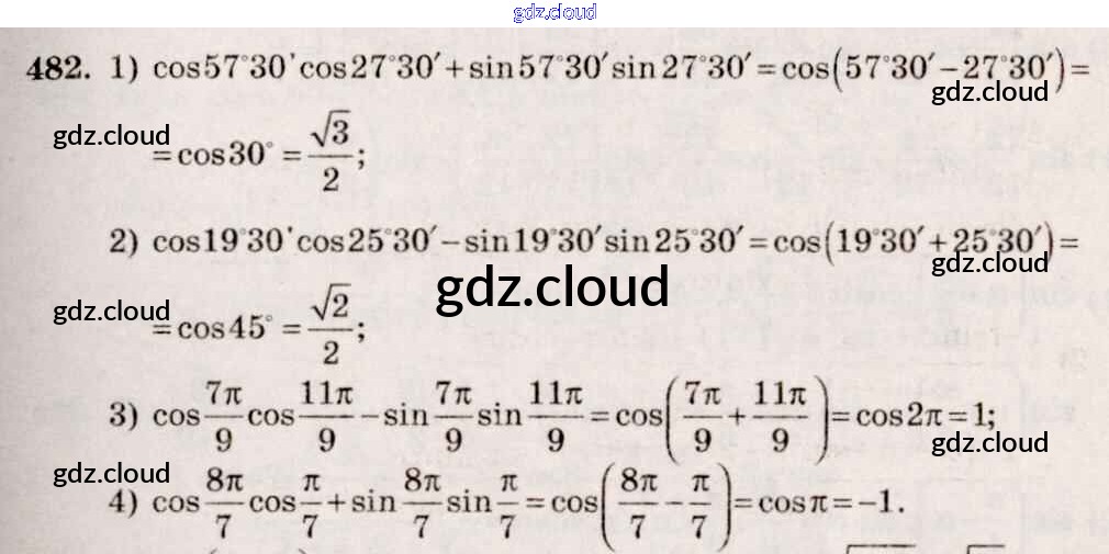 Ответ на задание 482 Учебник Алгебра за 10, 11 (десятый, одиннадцатый) класс Алимов, Ткачева, Колягин, Федорова, Шабунин Базовый и углубленный уровень 2015