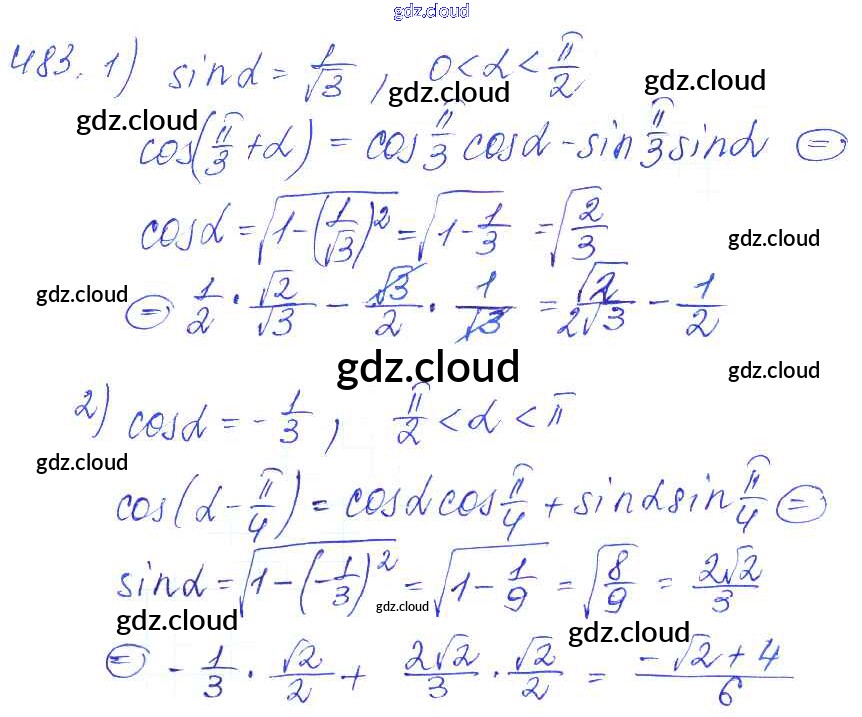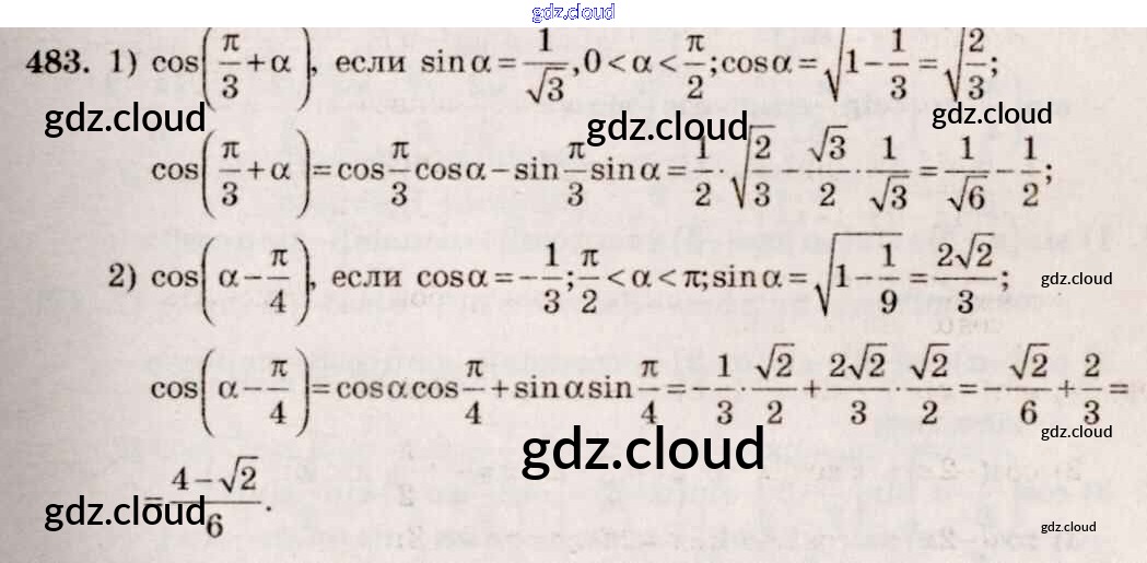 Ответ на задание 483 Учебник Алгебра за 10, 11 (десятый, одиннадцатый) класс Алимов, Ткачева, Колягин, Федорова, Шабунин Базовый и углубленный уровень 2015