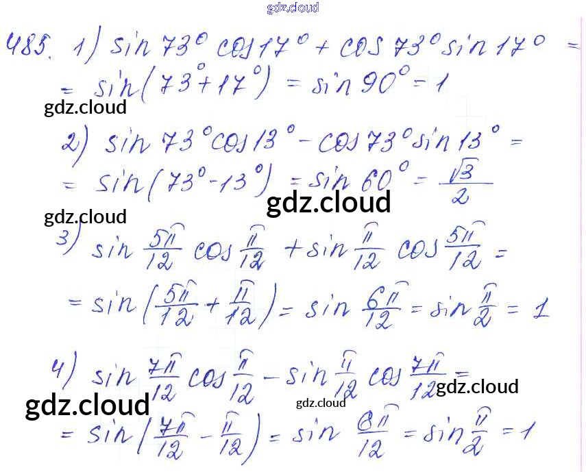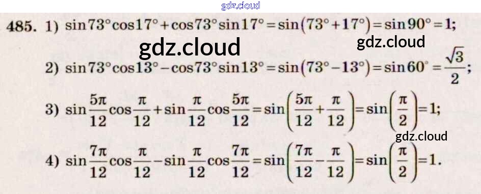 Ответ на задание 485 Учебник Алгебра за 10, 11 (десятый, одиннадцатый) класс Алимов, Ткачева, Колягин, Федорова, Шабунин Базовый и углубленный уровень 2015