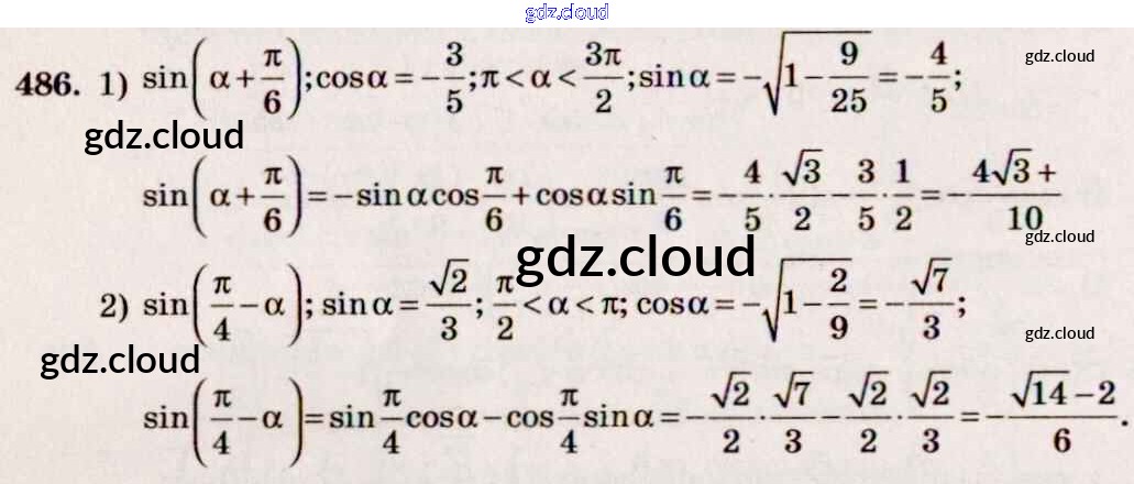 Ответ на задание 486 Учебник Алгебра за 10, 11 (десятый, одиннадцатый) класс Алимов, Ткачева, Колягин, Федорова, Шабунин Базовый и углубленный уровень 2015