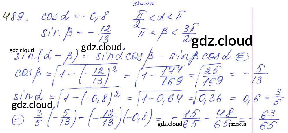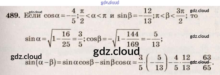 Ответ на задание 489 Учебник Алгебра за 10, 11 (десятый, одиннадцатый) класс Алимов, Ткачева, Колягин, Федорова, Шабунин Базовый и углубленный уровень 2015