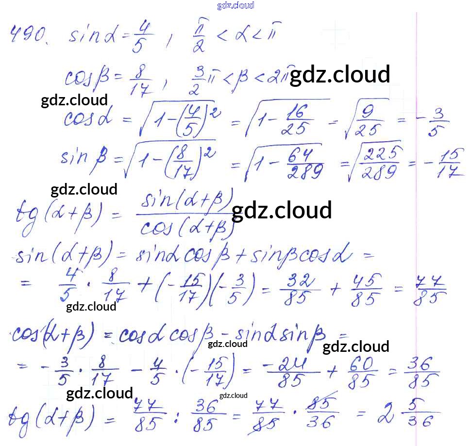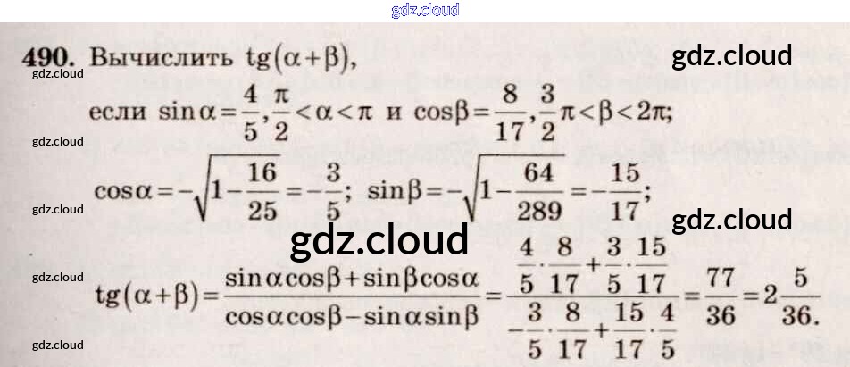 Ответ на задание 490 Учебник Алгебра за 10, 11 (десятый, одиннадцатый) класс Алимов, Ткачева, Колягин, Федорова, Шабунин Базовый и углубленный уровень 2015