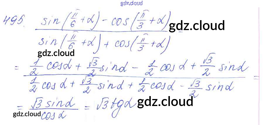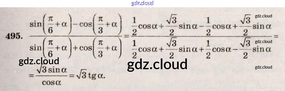 Ответ на задание 495 Учебник Алгебра за 10, 11 (десятый, одиннадцатый) класс Алимов, Ткачева, Колягин, Федорова, Шабунин Базовый и углубленный уровень 2015