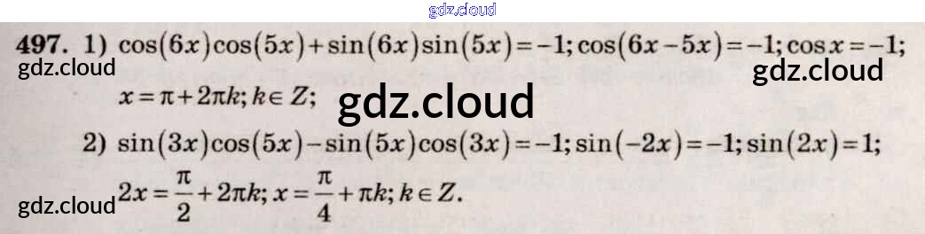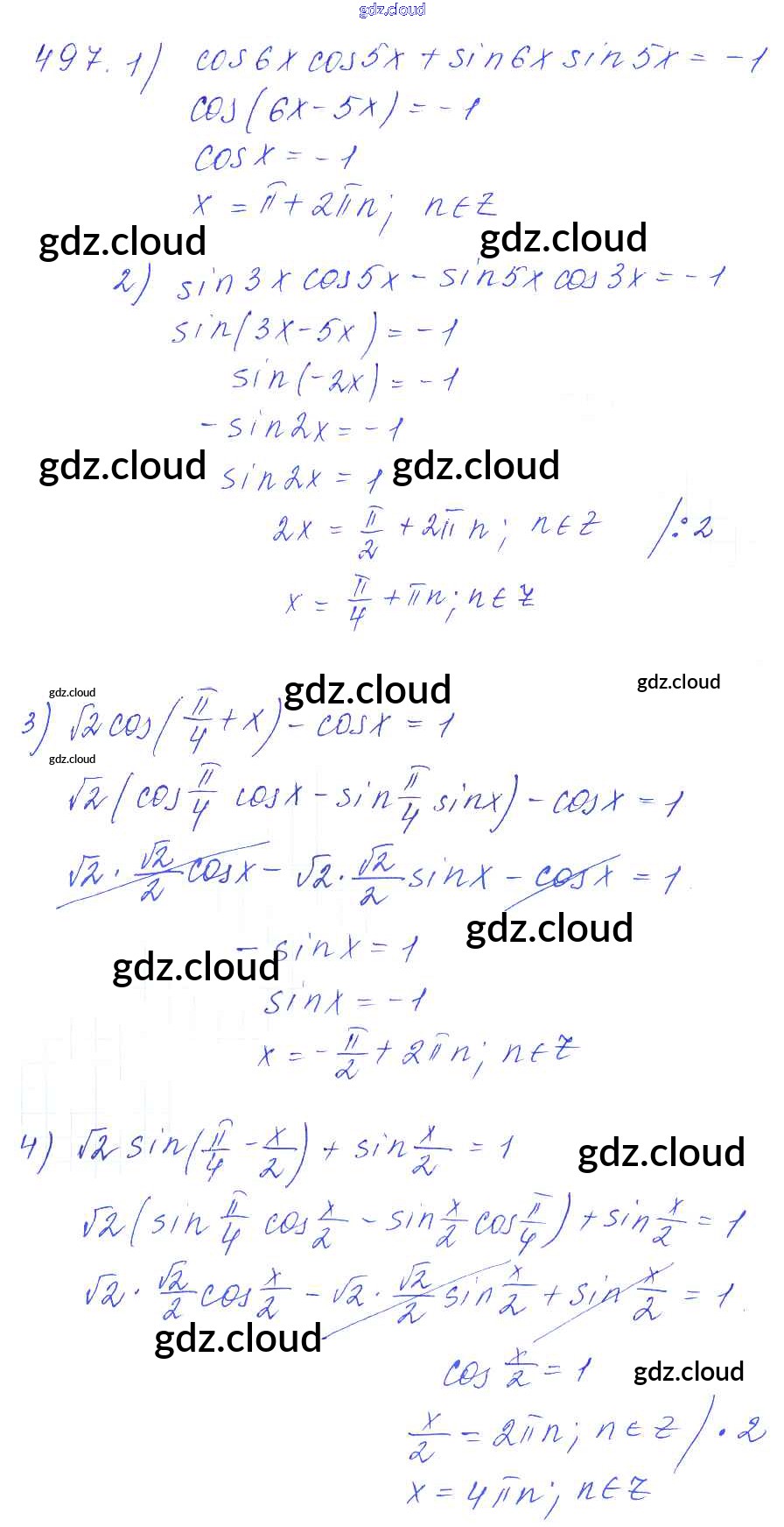 Ответ на задание 497 Учебник Алгебра за 10, 11 (десятый, одиннадцатый) класс Алимов, Ткачева, Колягин, Федорова, Шабунин Базовый и углубленный уровень 2015