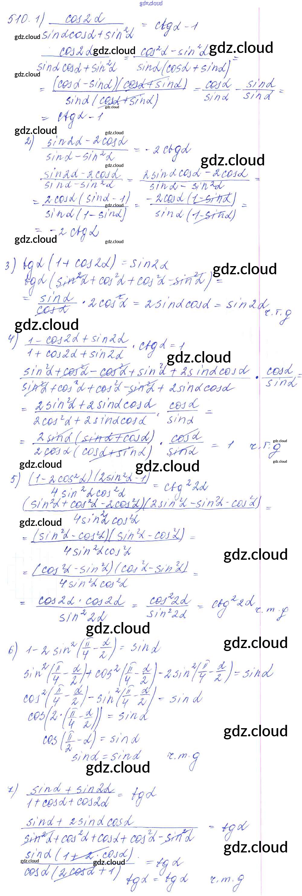 Ответ на задание 510 Учебник Алгебра за 10, 11 (десятый, одиннадцатый) класс Алимов, Ткачева, Колягин, Федорова, Шабунин Базовый и углубленный уровень 2015