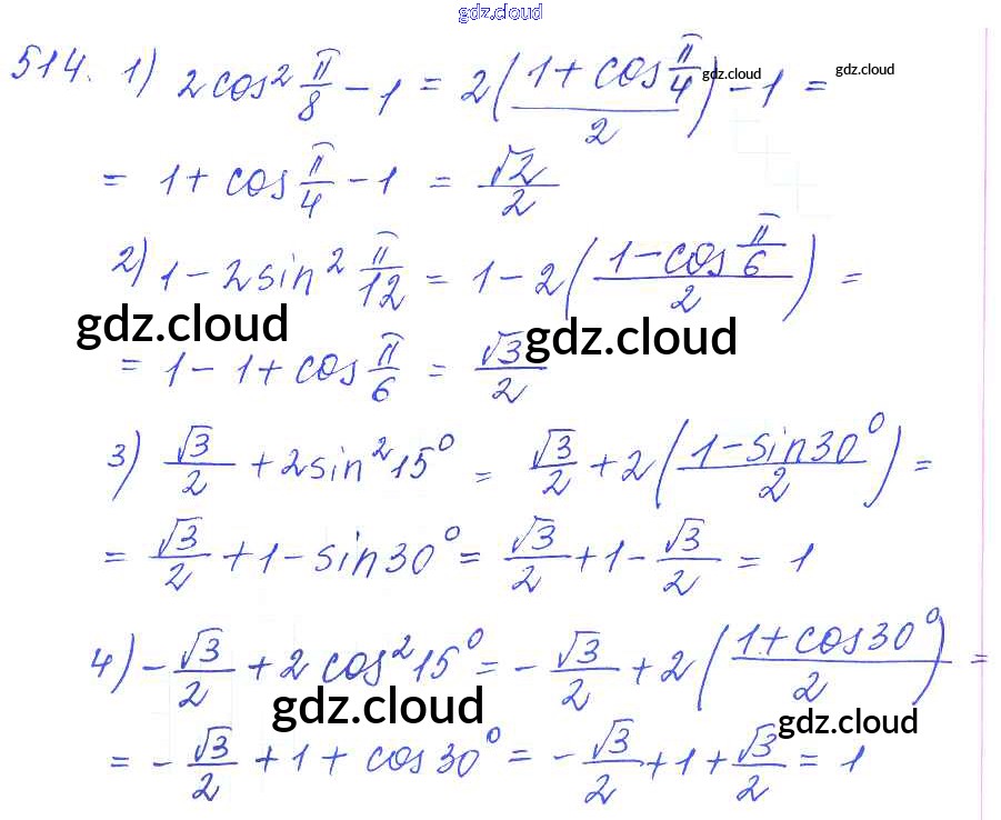 Ответ на задание 514 Учебник Алгебра за 10, 11 (десятый, одиннадцатый) класс Алимов, Ткачева, Колягин, Федорова, Шабунин Базовый и углубленный уровень 2015