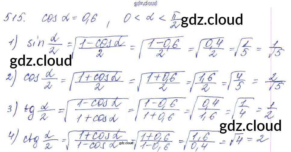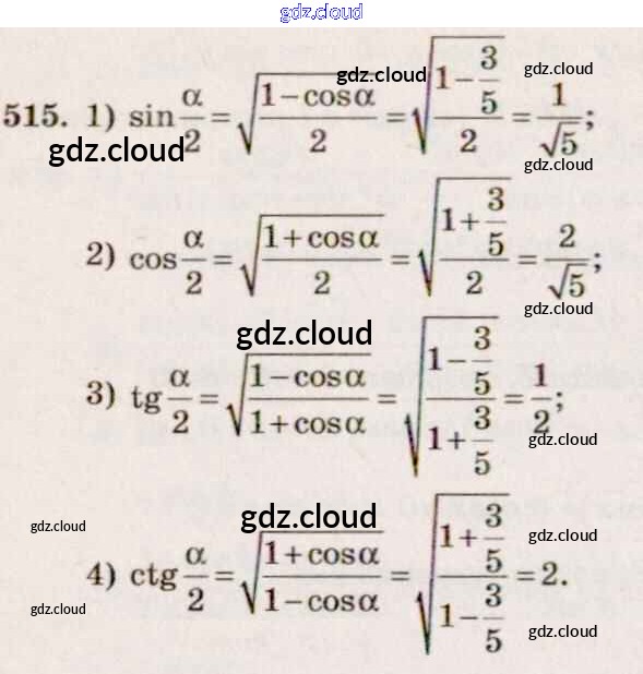 Ответ на задание 515 Учебник Алгебра за 10, 11 (десятый, одиннадцатый) класс Алимов, Ткачева, Колягин, Федорова, Шабунин Базовый и углубленный уровень 2015