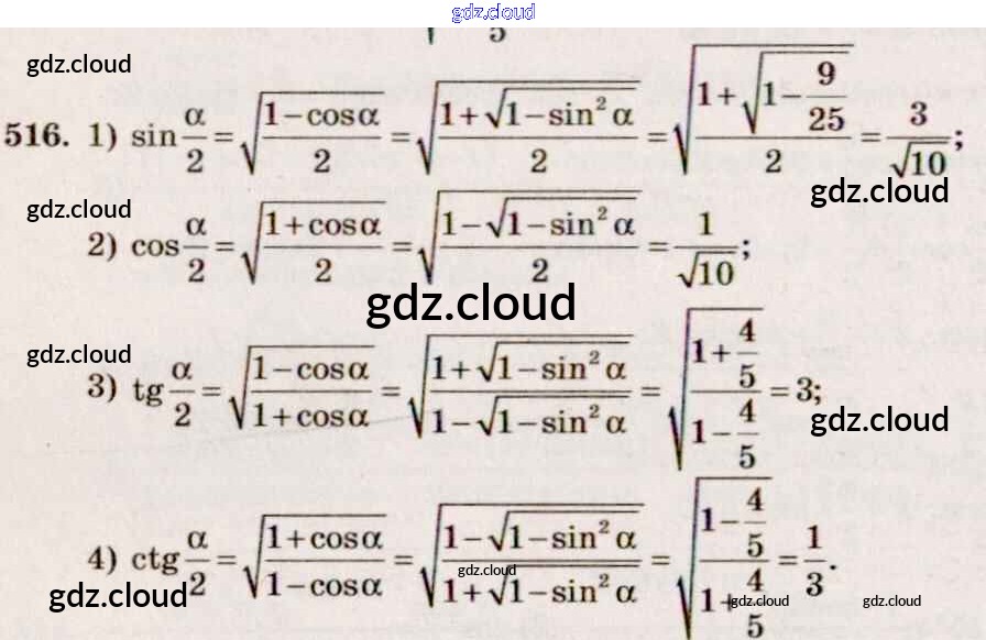 Ответ на задание 516 Учебник Алгебра за 10, 11 (десятый, одиннадцатый) класс Алимов, Ткачева, Колягин, Федорова, Шабунин Базовый и углубленный уровень 2015