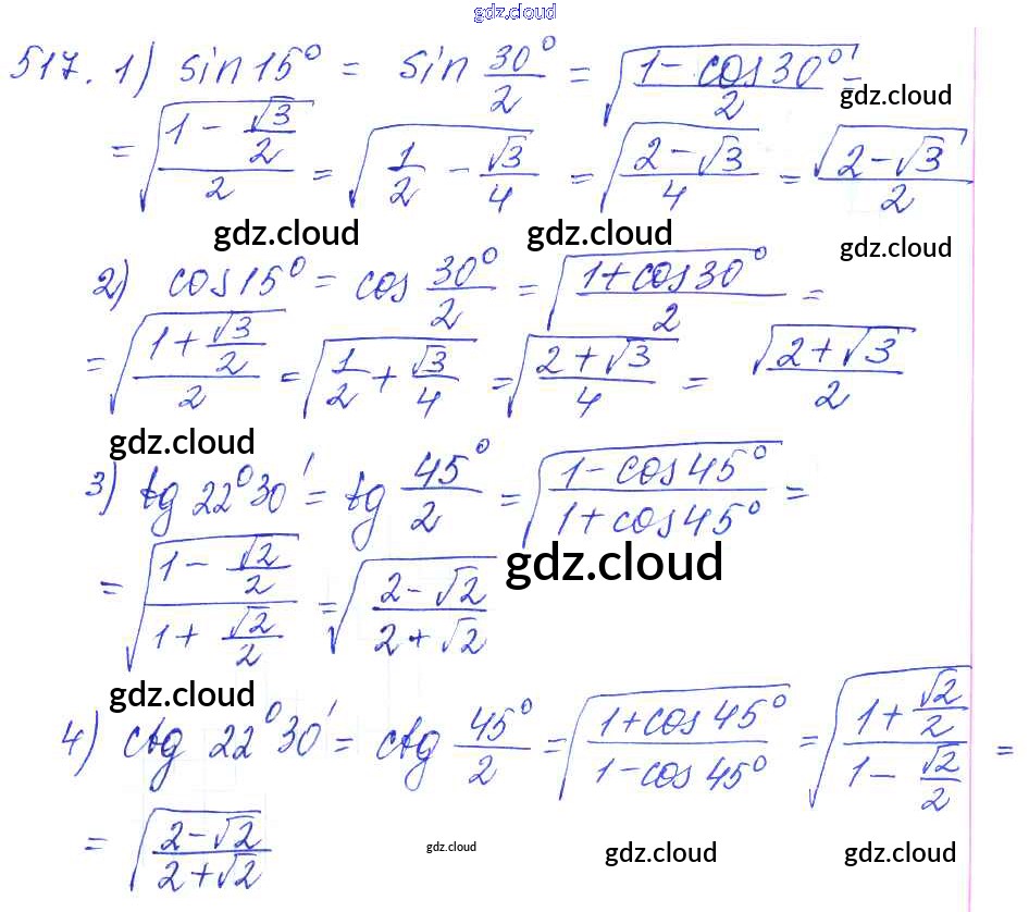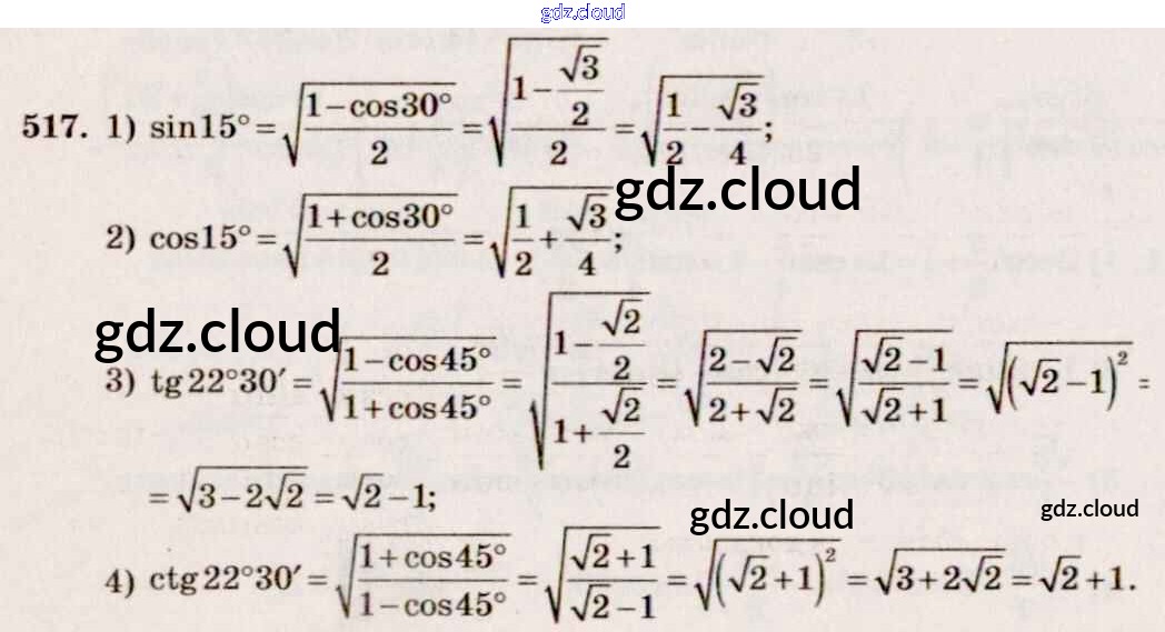 Ответ на задание 517 Учебник Алгебра за 10, 11 (десятый, одиннадцатый) класс Алимов, Ткачева, Колягин, Федорова, Шабунин Базовый и углубленный уровень 2015
