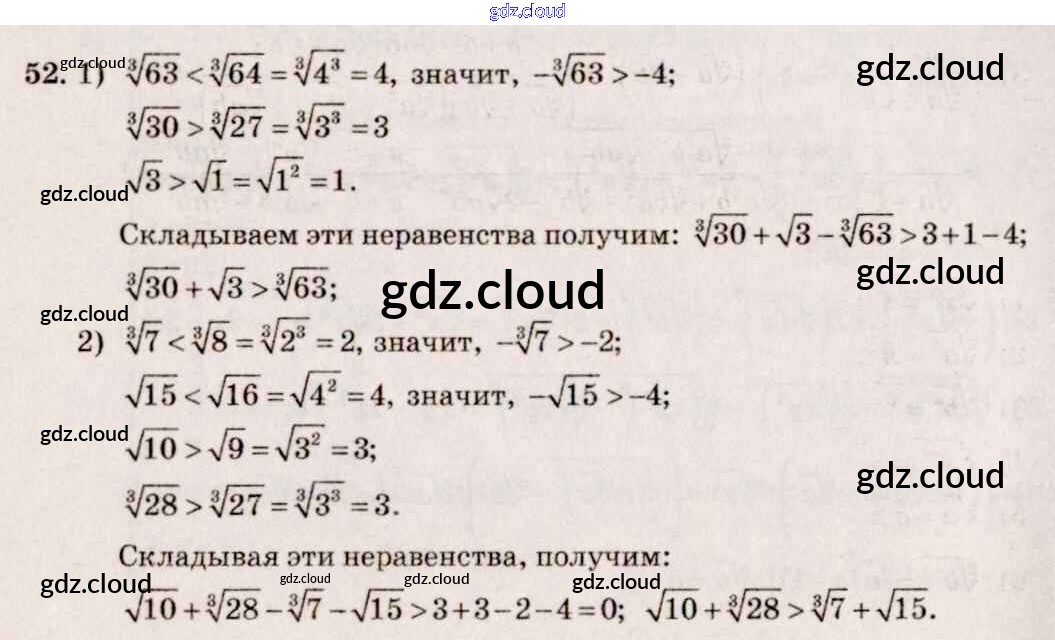 Ответ на задание 52 Учебник Алгебра за 10, 11 (десятый, одиннадцатый) класс Алимов, Ткачева, Колягин, Федорова, Шабунин Базовый и углубленный уровень 2015
