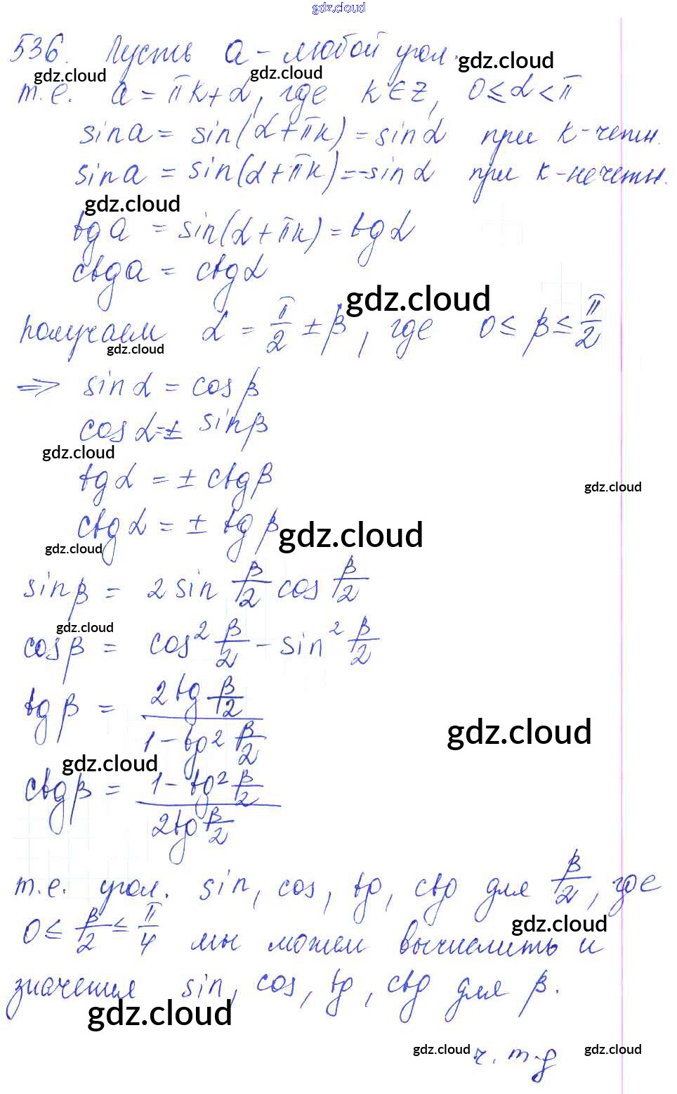 Ответ на задание 536 Учебник Алгебра за 10, 11 (десятый, одиннадцатый) класс Алимов, Ткачева, Колягин, Федорова, Шабунин Базовый и углубленный уровень 2015