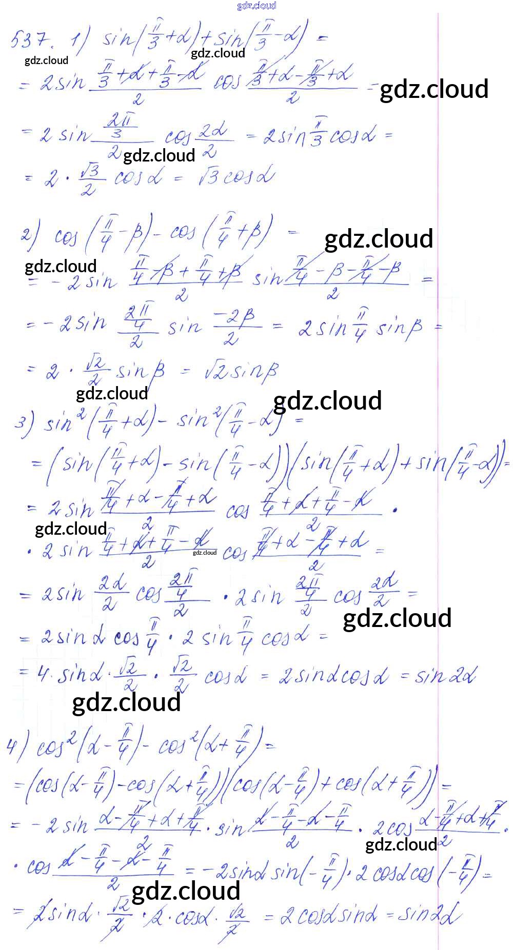 Ответ на задание 537 Учебник Алгебра за 10, 11 (десятый, одиннадцатый) класс Алимов, Ткачева, Колягин, Федорова, Шабунин Базовый и углубленный уровень 2015