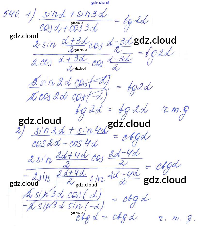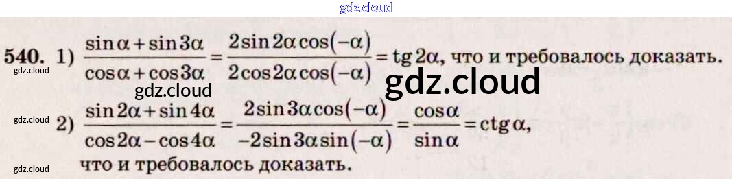 Ответ на задание 540 Учебник Алгебра за 10, 11 (десятый, одиннадцатый) класс Алимов, Ткачева, Колягин, Федорова, Шабунин Базовый и углубленный уровень 2015