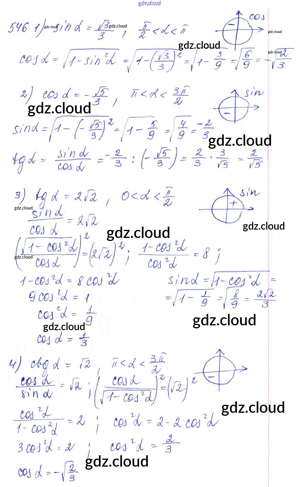 Ответ на задание 546 Учебник Алгебра за 10, 11 (десятый, одиннадцатый) класс Алимов, Ткачева, Колягин, Федорова, Шабунин Базовый и углубленный уровень 2015