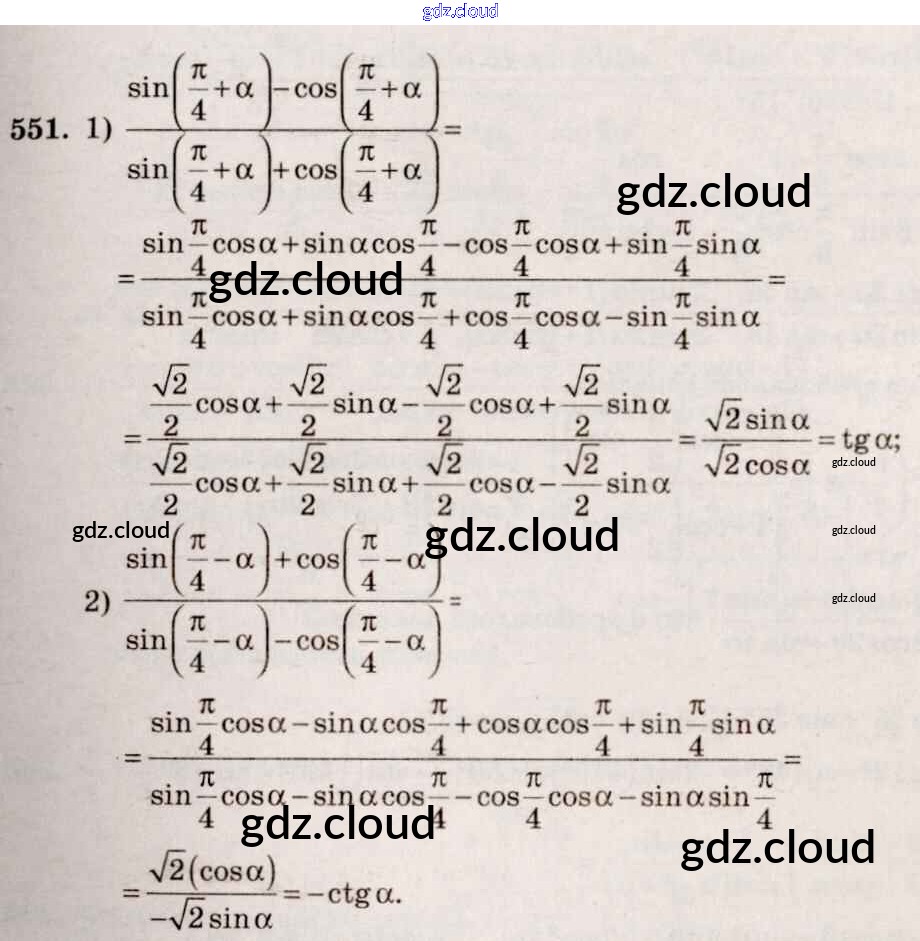 Ответ на задание 551 Учебник Алгебра за 10, 11 (десятый, одиннадцатый) класс Алимов, Ткачева, Колягин, Федорова, Шабунин Базовый и углубленный уровень 2015