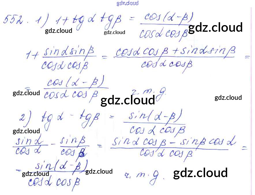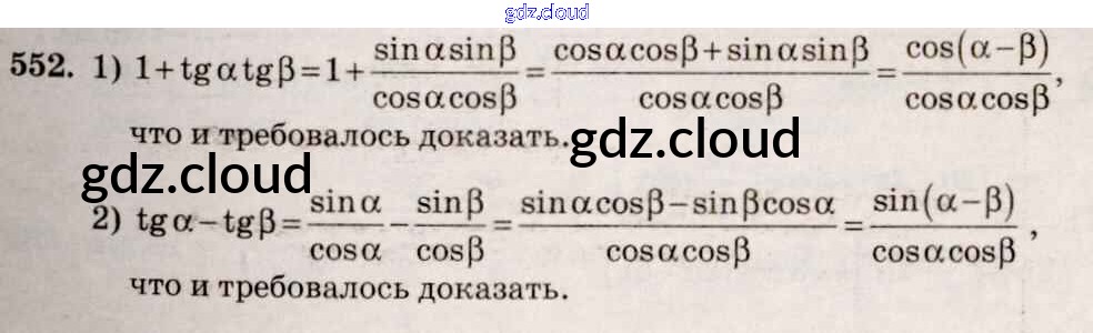 Ответ на задание 552 Учебник Алгебра за 10, 11 (десятый, одиннадцатый) класс Алимов, Ткачева, Колягин, Федорова, Шабунин Базовый и углубленный уровень 2015