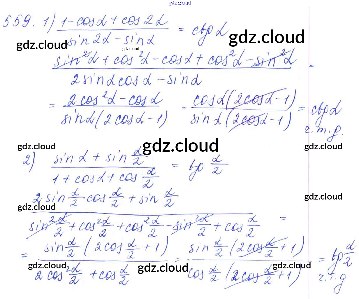 Ответ на задание 559 Учебник Алгебра за 10, 11 (десятый, одиннадцатый) класс Алимов, Ткачева, Колягин, Федорова, Шабунин Базовый и углубленный уровень 2015