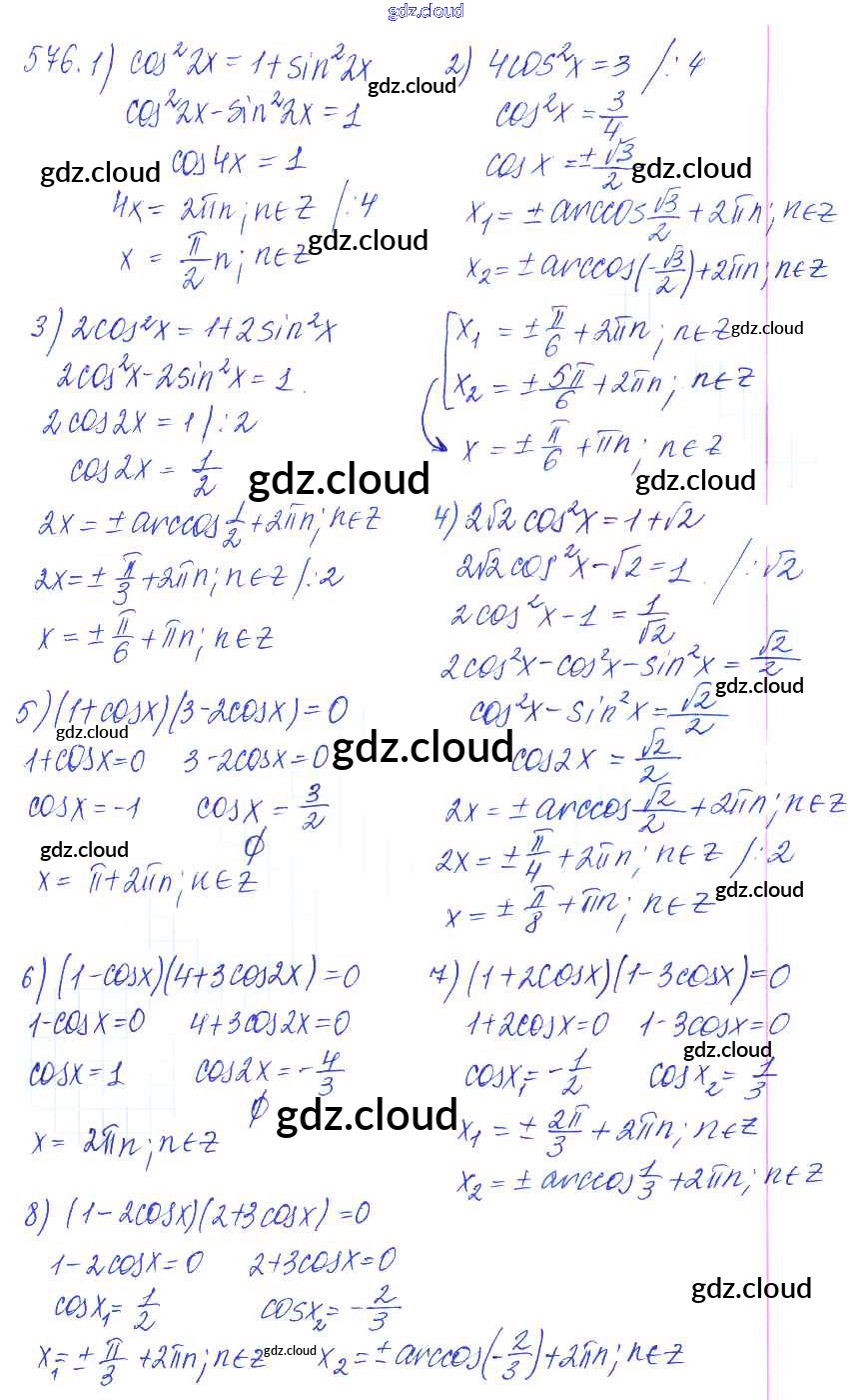 Ответ на задание 576 Учебник Алгебра за 10, 11 (десятый, одиннадцатый) класс Алимов, Ткачева, Колягин, Федорова, Шабунин Базовый и углубленный уровень 2015