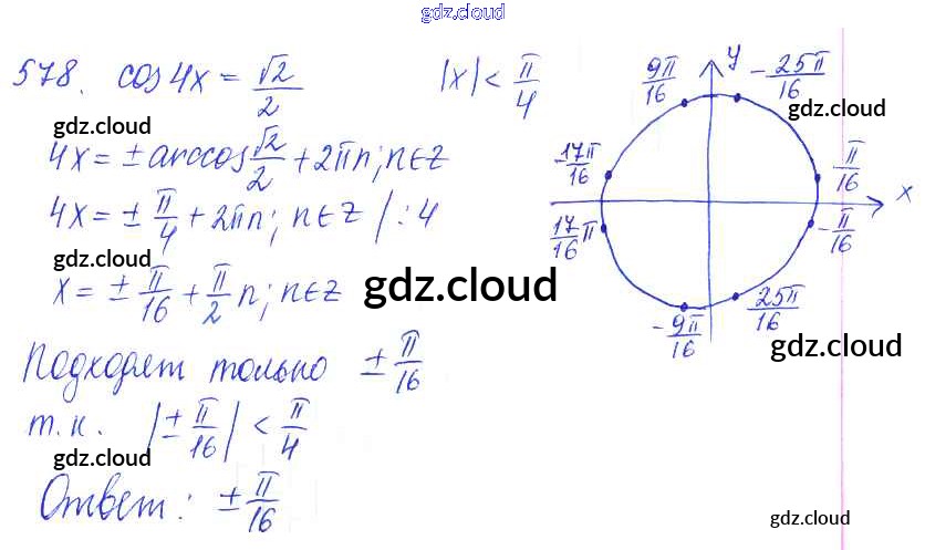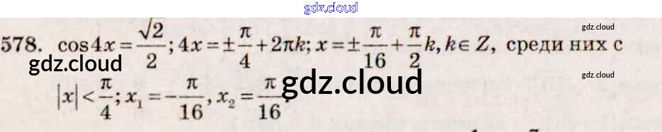 Ответ на задание 578 Учебник Алгебра за 10, 11 (десятый, одиннадцатый) класс Алимов, Ткачева, Колягин, Федорова, Шабунин Базовый и углубленный уровень 2015