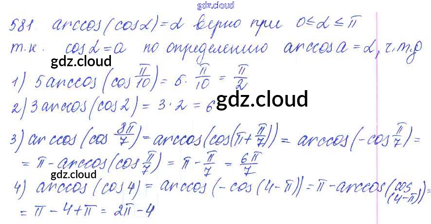 Ответ на задание 581 Учебник Алгебра за 10, 11 (десятый, одиннадцатый) класс Алимов, Ткачева, Колягин, Федорова, Шабунин Базовый и углубленный уровень 2015
