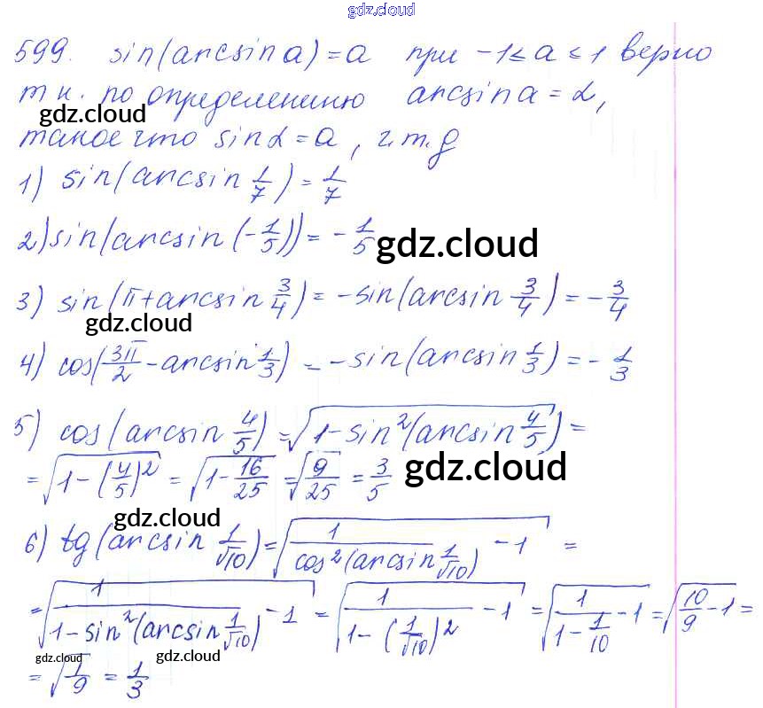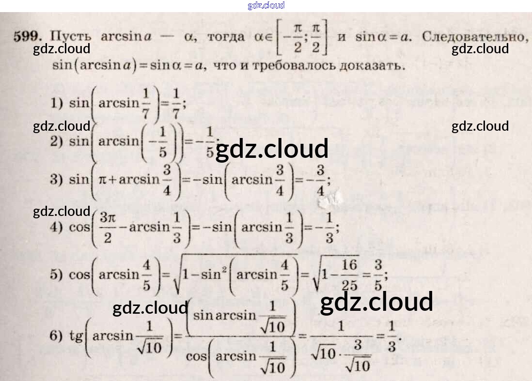 Ответ на задание 599 Учебник Алгебра за 10, 11 (десятый, одиннадцатый) класс Алимов, Ткачева, Колягин, Федорова, Шабунин Базовый и углубленный уровень 2015