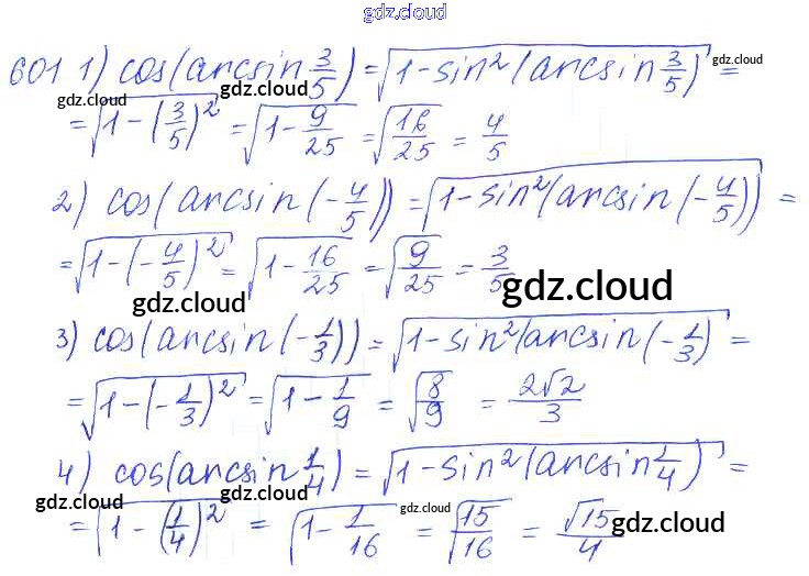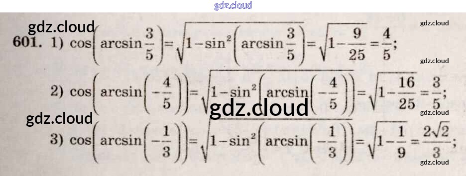 Ответ на задание 601 Учебник Алгебра за 10, 11 (десятый, одиннадцатый) класс Алимов, Ткачева, Колягин, Федорова, Шабунин Базовый и углубленный уровень 2015