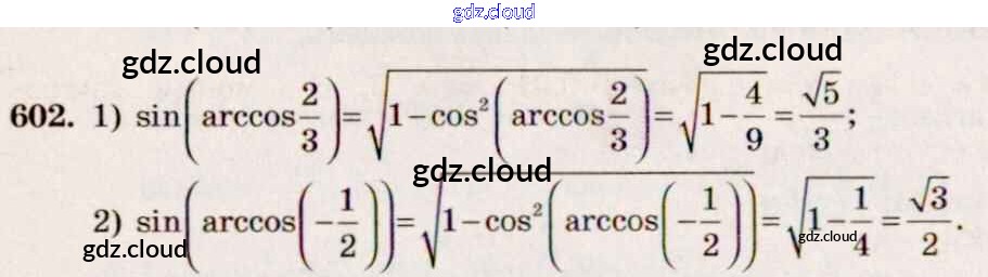 Ответ на задание 602 Учебник Алгебра за 10, 11 (десятый, одиннадцатый) класс Алимов, Ткачева, Колягин, Федорова, Шабунин Базовый и углубленный уровень 2015