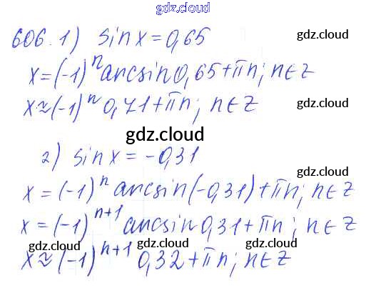 Ответ на задание 606 Учебник Алгебра за 10, 11 (десятый, одиннадцатый) класс Алимов, Ткачева, Колягин, Федорова, Шабунин Базовый и углубленный уровень 2015