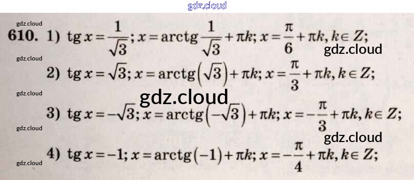 Ответ на задание 610 Учебник Алгебра за 10, 11 (десятый, одиннадцатый) класс Алимов, Ткачева, Колягин, Федорова, Шабунин Базовый и углубленный уровень 2015