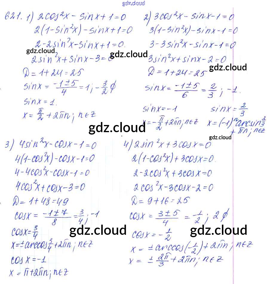 Ответ на задание 621 Учебник Алгебра за 10, 11 (десятый, одиннадцатый) класс Алимов, Ткачева, Колягин, Федорова, Шабунин Базовый и углубленный уровень 2015