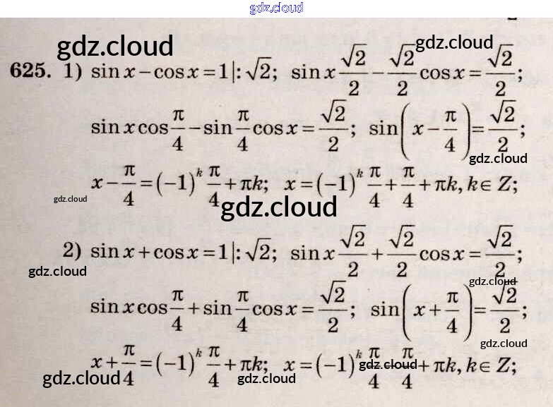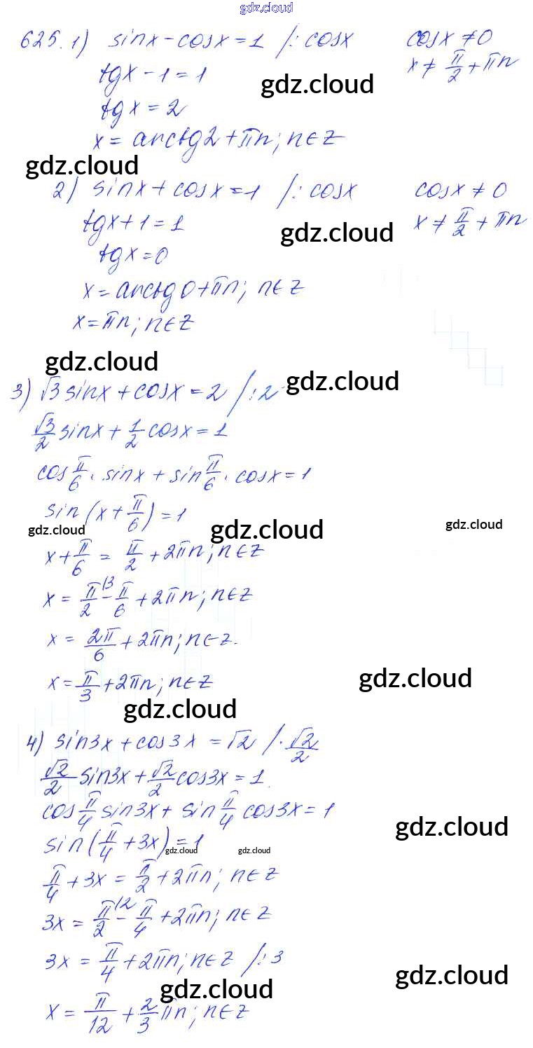 Ответ на задание 625 Учебник Алгебра за 10, 11 (десятый, одиннадцатый) класс Алимов, Ткачева, Колягин, Федорова, Шабунин Базовый и углубленный уровень 2015