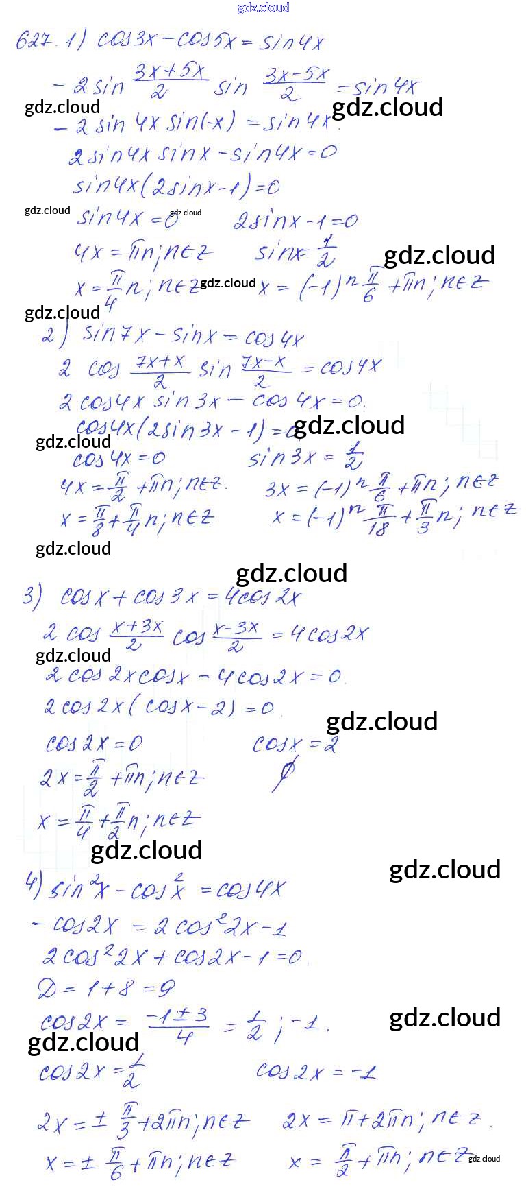 Ответ на задание 627 Учебник Алгебра за 10, 11 (десятый, одиннадцатый) класс Алимов, Ткачева, Колягин, Федорова, Шабунин Базовый и углубленный уровень 2015
