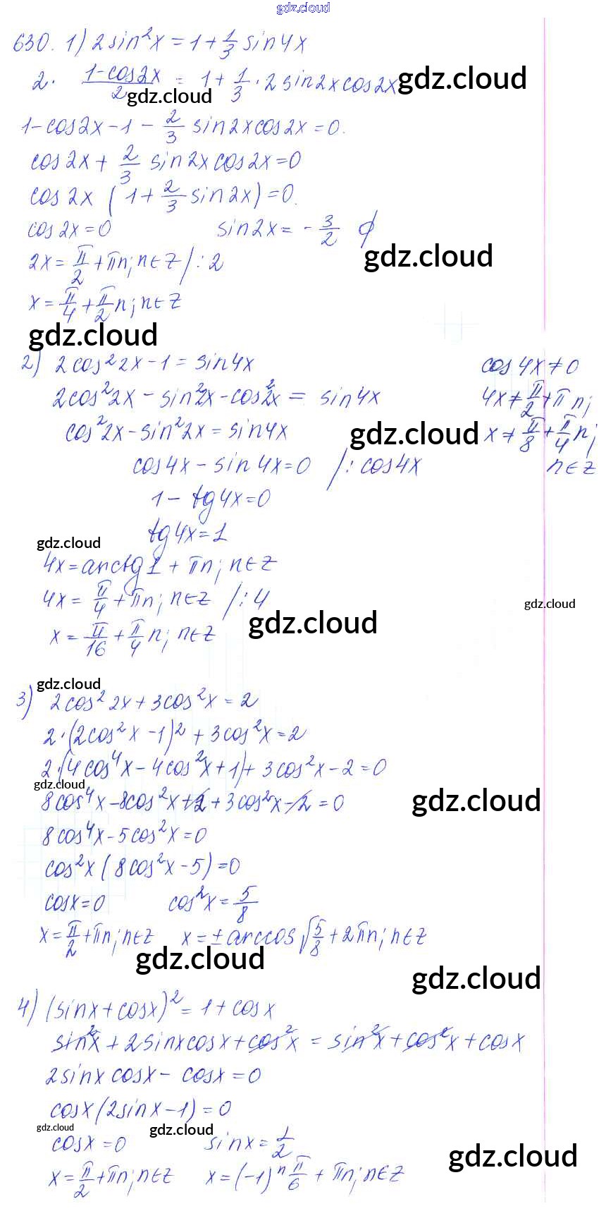 Ответ на задание 630 Учебник Алгебра за 10, 11 (десятый, одиннадцатый) класс Алимов, Ткачева, Колягин, Федорова, Шабунин Базовый и углубленный уровень 2015