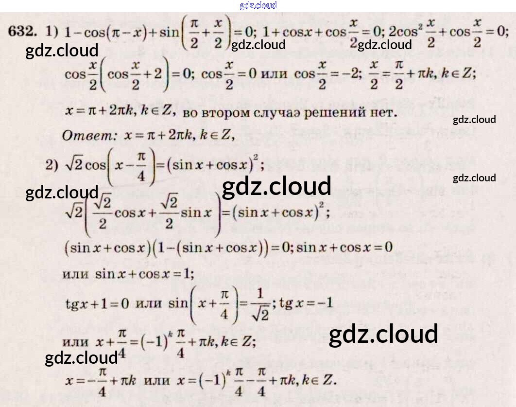 Ответ на задание 632 Учебник Алгебра за 10, 11 (десятый, одиннадцатый) класс Алимов, Ткачева, Колягин, Федорова, Шабунин Базовый и углубленный уровень 2015