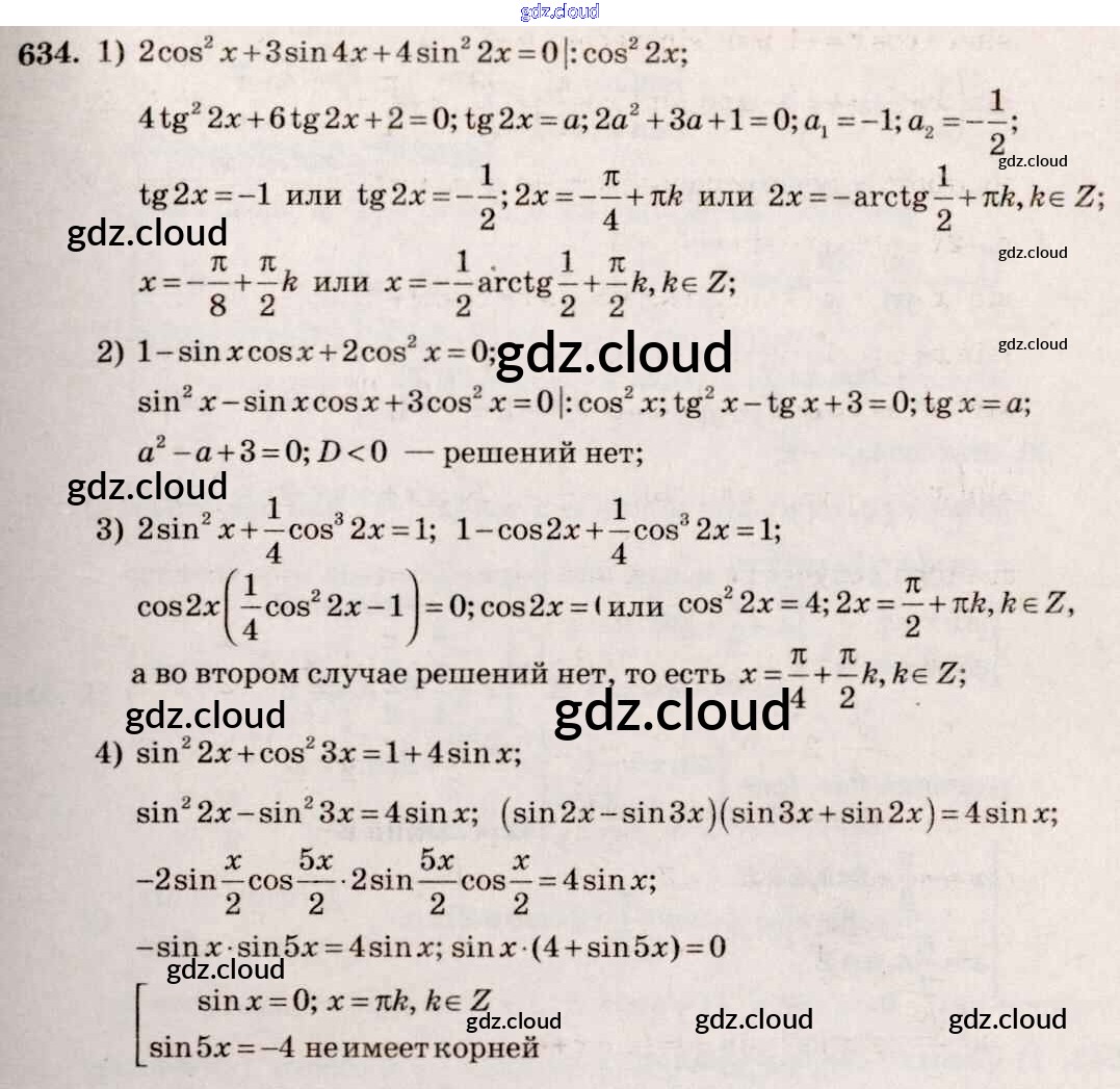 Ответ на задание 634 Учебник Алгебра за 10, 11 (десятый, одиннадцатый) класс Алимов, Ткачева, Колягин, Федорова, Шабунин Базовый и углубленный уровень 2015