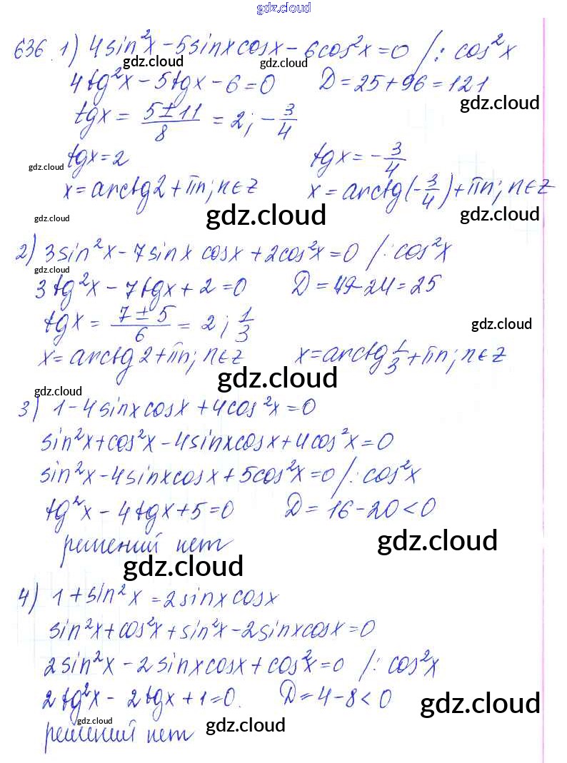 Ответ на задание 636 Учебник Алгебра за 10, 11 (десятый, одиннадцатый) класс Алимов, Ткачева, Колягин, Федорова, Шабунин Базовый и углубленный уровень 2015