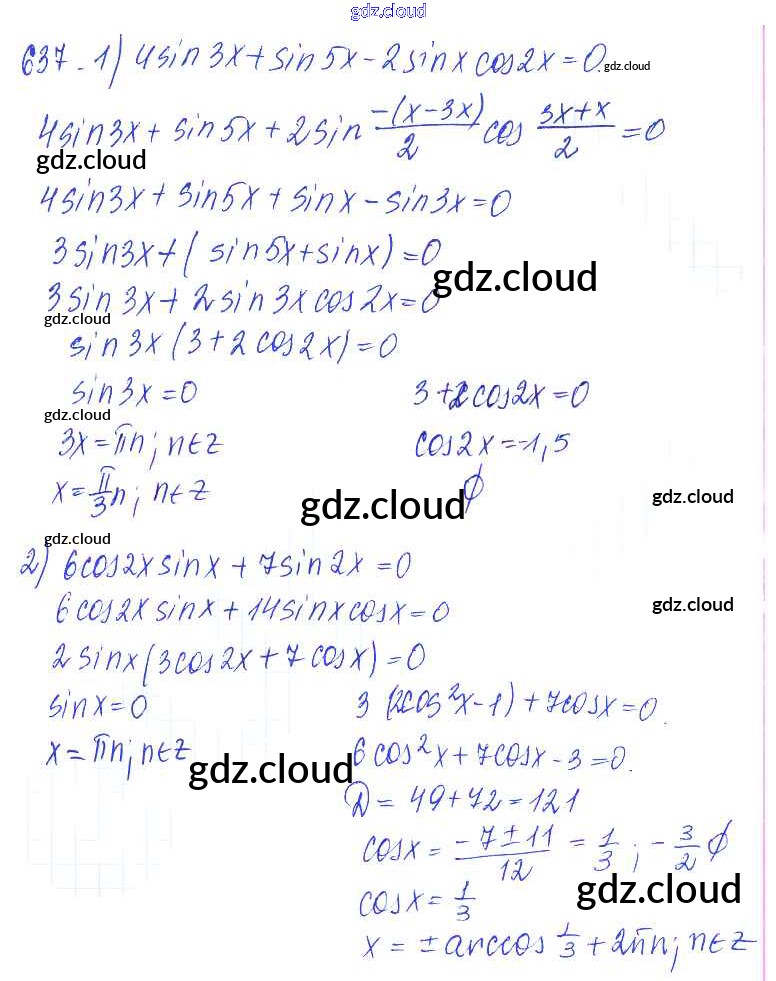 Ответ на задание 637 Учебник Алгебра за 10, 11 (десятый, одиннадцатый) класс Алимов, Ткачева, Колягин, Федорова, Шабунин Базовый и углубленный уровень 2015