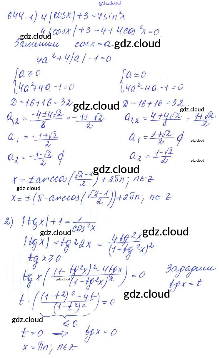 Ответ на задание 644 Учебник Алгебра за 10, 11 (десятый, одиннадцатый) класс Алимов, Ткачева, Колягин, Федорова, Шабунин Базовый и углубленный уровень 2015