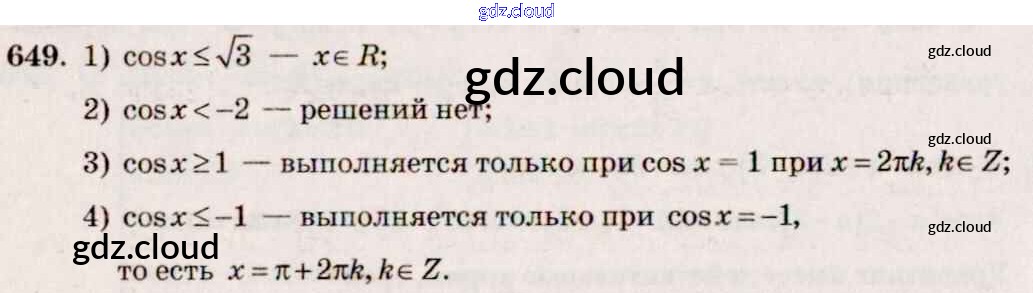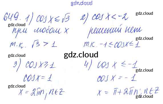 Ответ на задание 649 Учебник Алгебра за 10, 11 (десятый, одиннадцатый) класс Алимов, Ткачева, Колягин, Федорова, Шабунин Базовый и углубленный уровень 2015