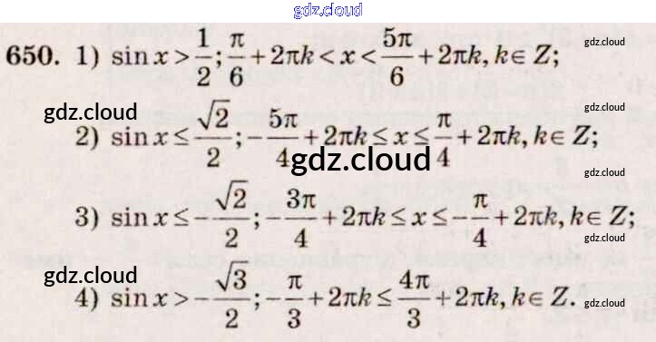 Ответ на задание 650 Учебник Алгебра за 10, 11 (десятый, одиннадцатый) класс Алимов, Ткачева, Колягин, Федорова, Шабунин Базовый и углубленный уровень 2015