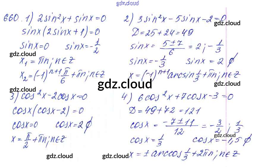 Ответ на задание 660 Учебник Алгебра за 10, 11 (десятый, одиннадцатый) класс Алимов, Ткачева, Колягин, Федорова, Шабунин Базовый и углубленный уровень 2015