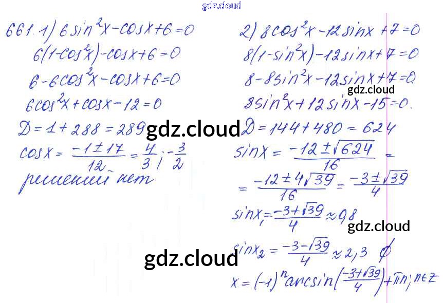 Ответ на задание 661 Учебник Алгебра за 10, 11 (десятый, одиннадцатый) класс Алимов, Ткачева, Колягин, Федорова, Шабунин Базовый и углубленный уровень 2015