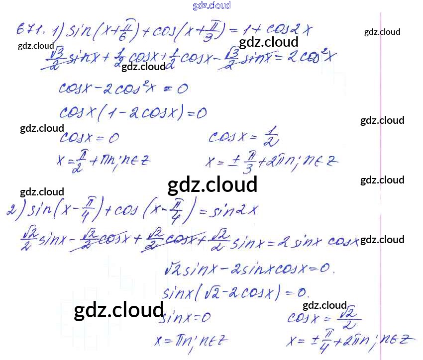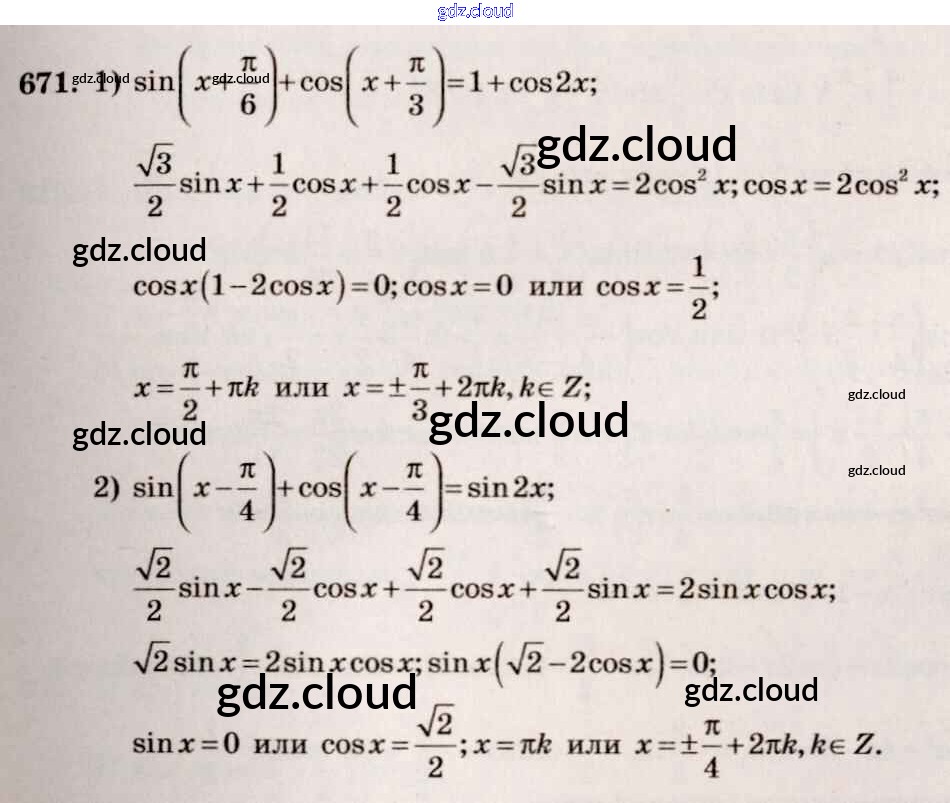 Ответ на задание 671 Учебник Алгебра за 10, 11 (десятый, одиннадцатый) класс Алимов, Ткачева, Колягин, Федорова, Шабунин Базовый и углубленный уровень 2015
