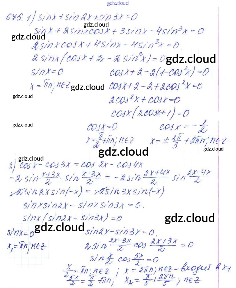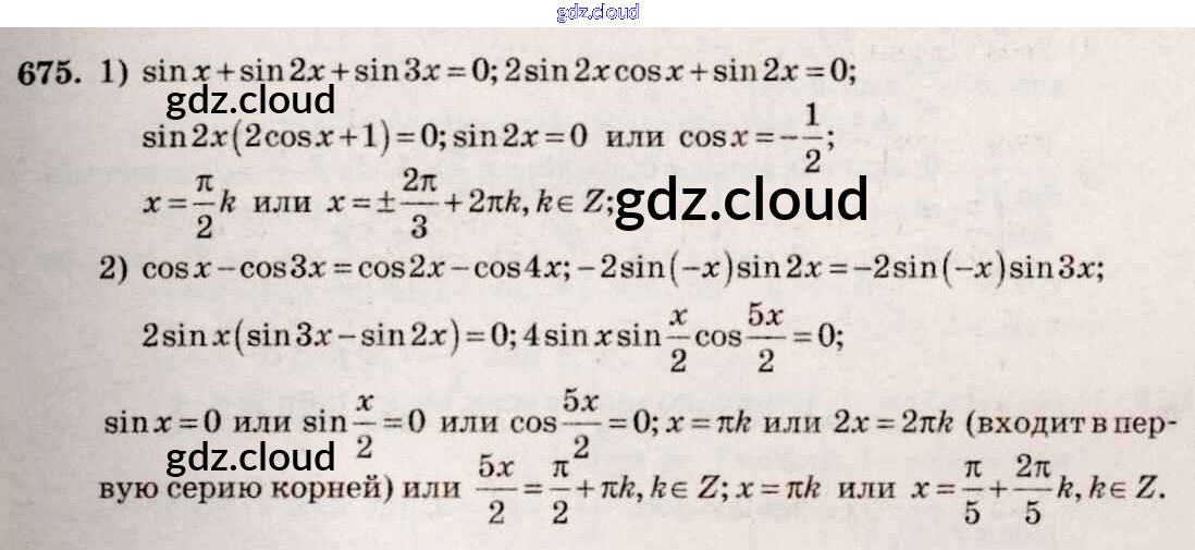 Ответ на задание 675 Учебник Алгебра за 10, 11 (десятый, одиннадцатый) класс Алимов, Ткачева, Колягин, Федорова, Шабунин Базовый и углубленный уровень 2015